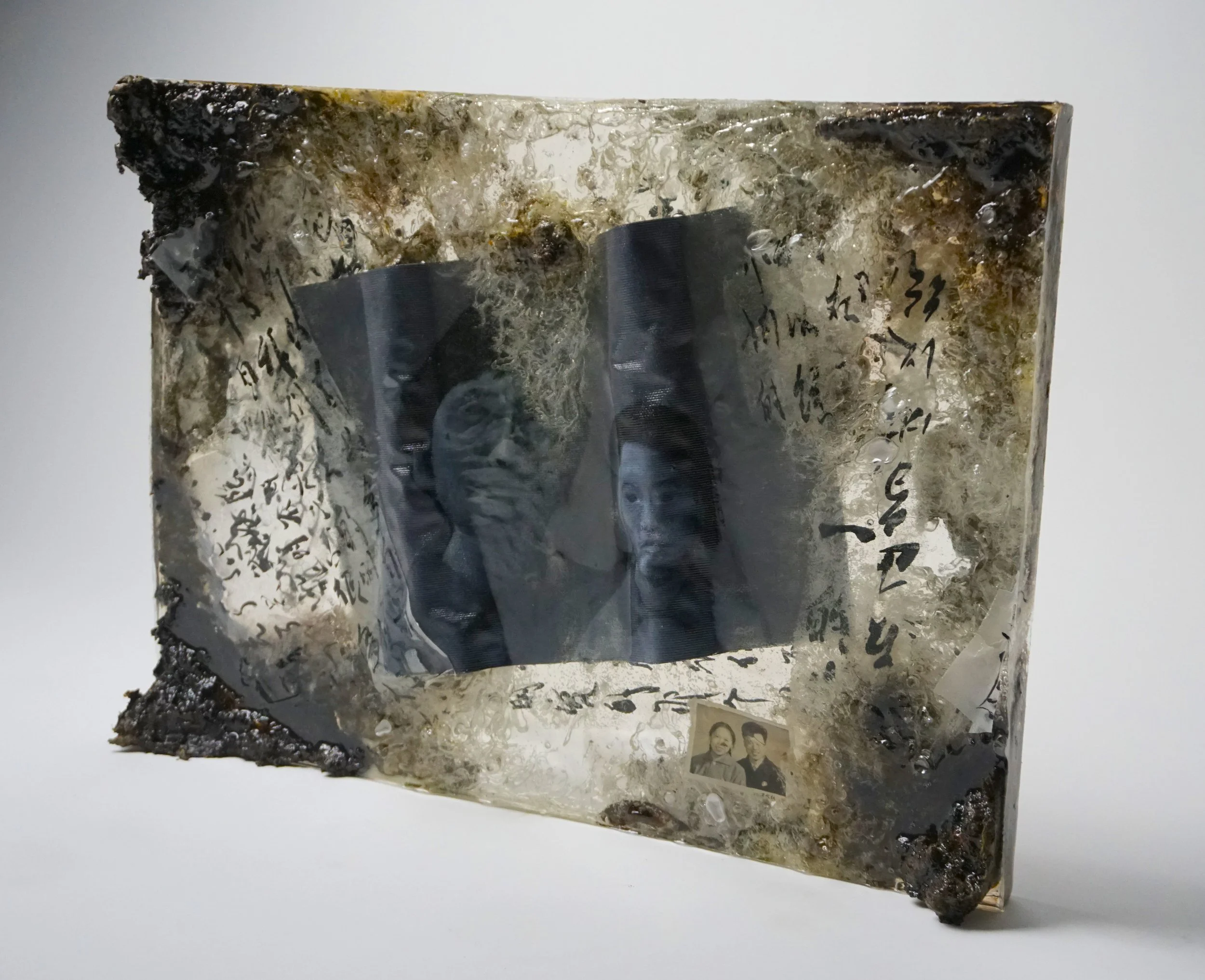 ‘Displacement’ 201842*29.7cmOil on canvas - Ink on paper - Found photograph - Cement - Latex - Spray paint - Resin - Soil